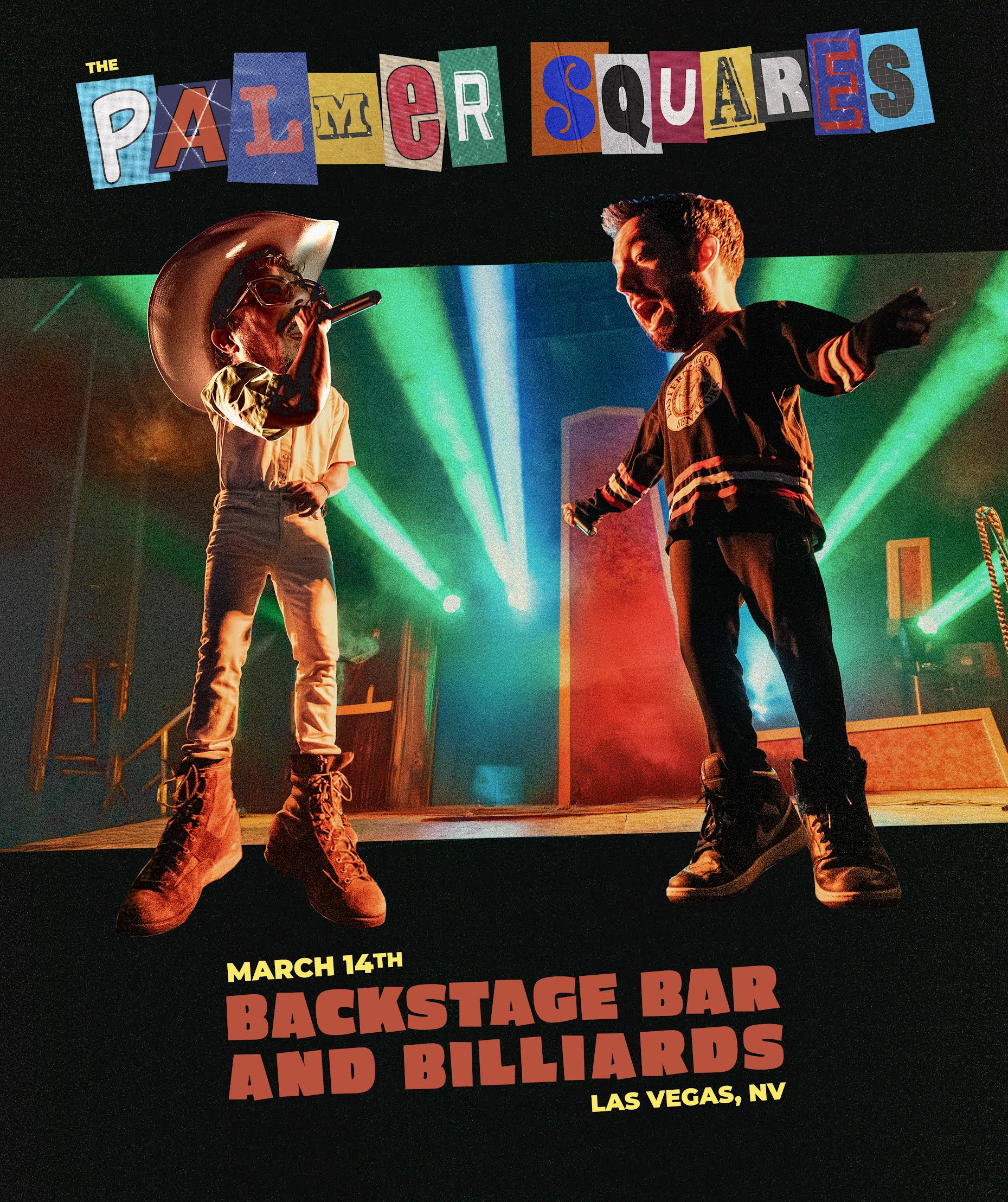 The Palmer Squares bring their sharp-witted hip-hop duo energy to the intimate confines of Backstage Bar & Billiards in downtown Las Vegas. Known for their intricate wordplay and old-school boom-bap production style, the Chicago-based pair has built a dedicated following through their technically proficient flows and clever lyricism that draws from golden-age hip-hop influences while maintaining a fresh, modern edge.
