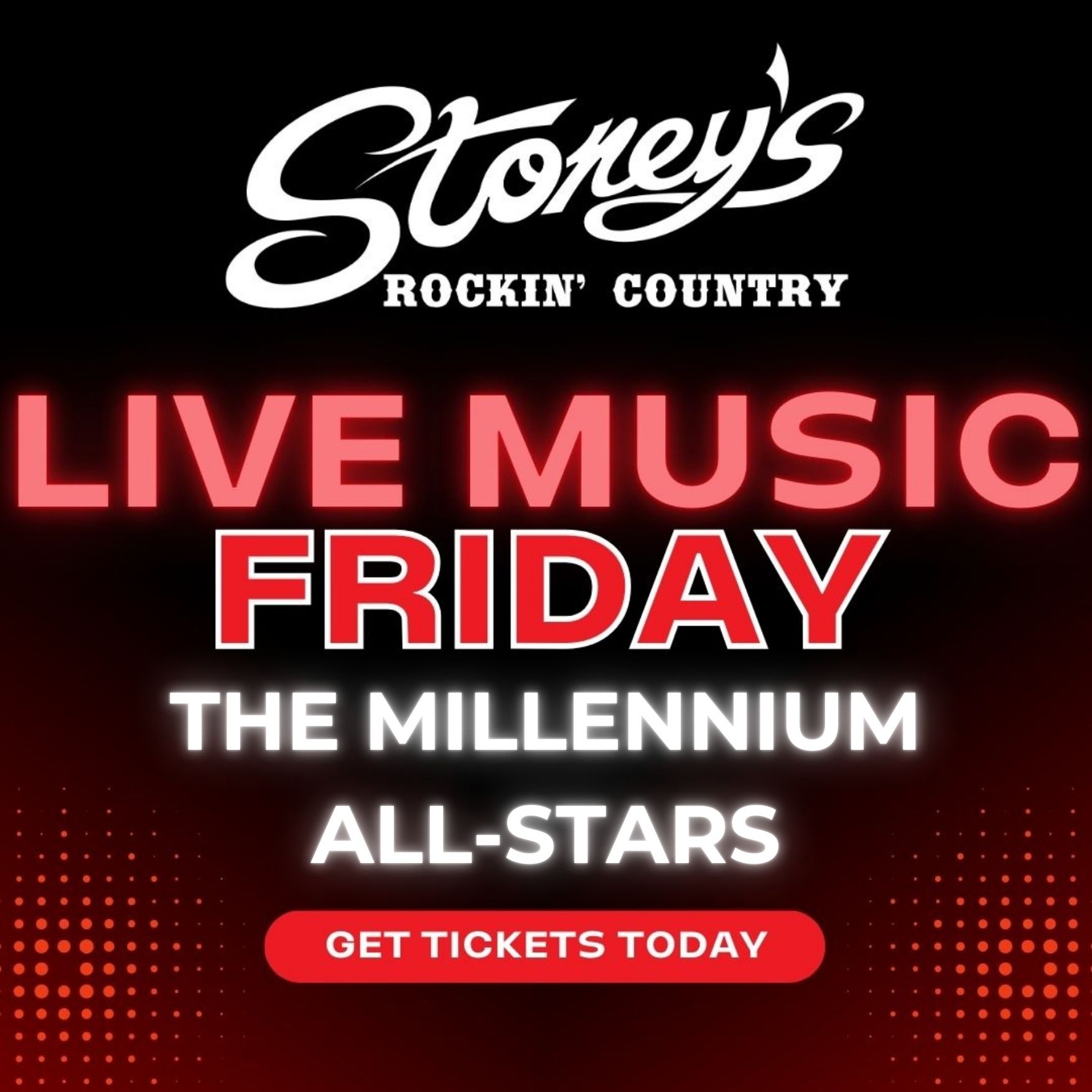 The Millennium All-Stars are bringing their high-energy performance to Stoney's Rockin' Country. This dynamic band delivers a nostalgic musical journey through the hits of the 2000s with their own country twist. The venue's authentic honky-tonk atmosphere provides the perfect backdrop for their blend of millennium pop classics and country flair.