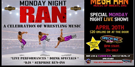 Mega Ran brings his unique fusion of hip-hop and wrestling culture to the Millennium Fandom Bar for a night that celebrates the iconic entrance themes and musical moments from the squared circle. The Philadelphia-based rapper and producer, known for blending video game soundtracks and wrestling references into his bars, takes center stage in the Arts District's premier pop culture hangout. The show features live performances, DJ sets spinning classic wrestling entrance music, and the kind of surprise moments that keep the crowd on their feet.
