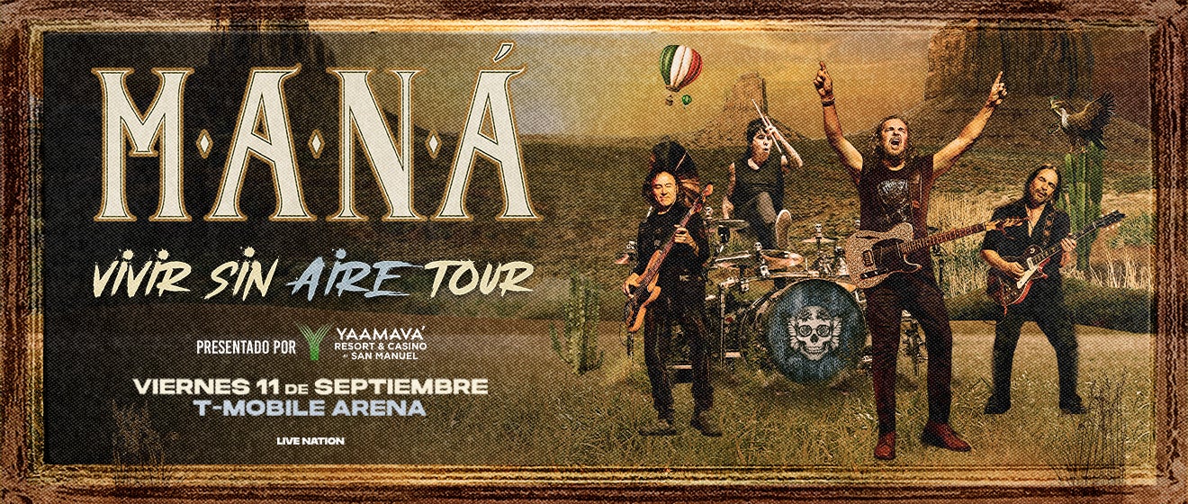 MANÁ brings their Vivir Sin Aire Tour to T-Mobile Arena, bringing decades of Latin rock excellence to the Vegas stage. The Mexican rock legends have been filling arenas across the globe since the late '80s, and this tour celebrates both their classic hits and new material. Known for their socially conscious lyrics wrapped in infectious rock melodies, the band delivers performances that feel intimate even in the largest venues.