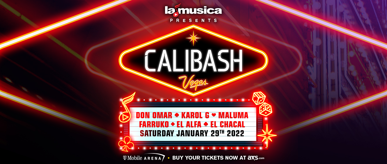 Don't miss Calibash featuring Don Omar, Maluma, Farruko, Karol G, El Alfa, and El Chacal at T-Mobile Arena on January 29!
