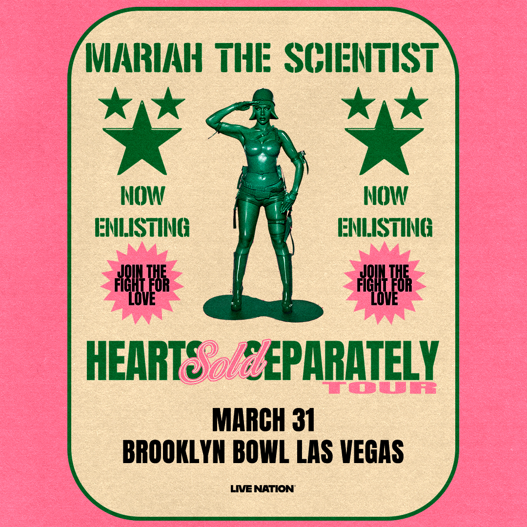 Mariah the Scientist brings her HEARTS SOLD SEPARATELY TOUR to the Brooklyn Bowl Las Vegas, showcasing her unique blend of R&B and alternative sounds. Known for her emotional lyrics and mesmerizing vocals, Mariah creates an intimate atmosphere that connects deeply with her audience. Her performances feature songs that explore love, heartbreak, and personal growth with a scientific precision that's become her signature style.