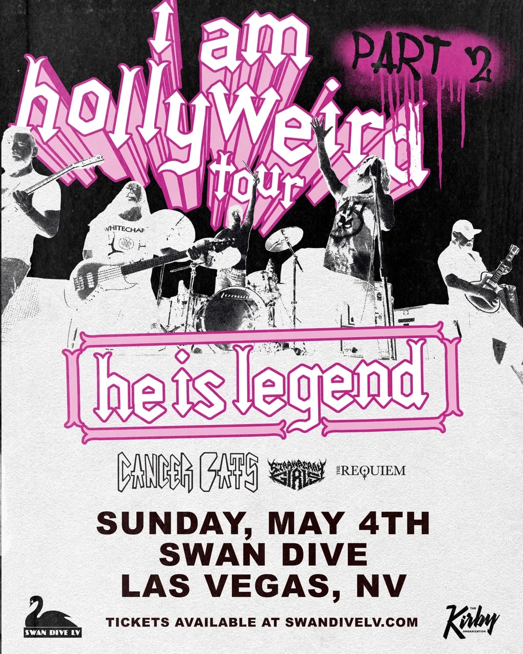 He Is Legend brings their 'I Am Hollyweird Tour' to Swan Dive, showcasing their unique blend of hard rock and metal that has earned them a dedicated following since their formation in the early 2000s. Known for their genre-bending sound that incorporates elements of southern rock, metal, and alternative styles, the band continues to push boundaries with their innovative approach to heavy music.
