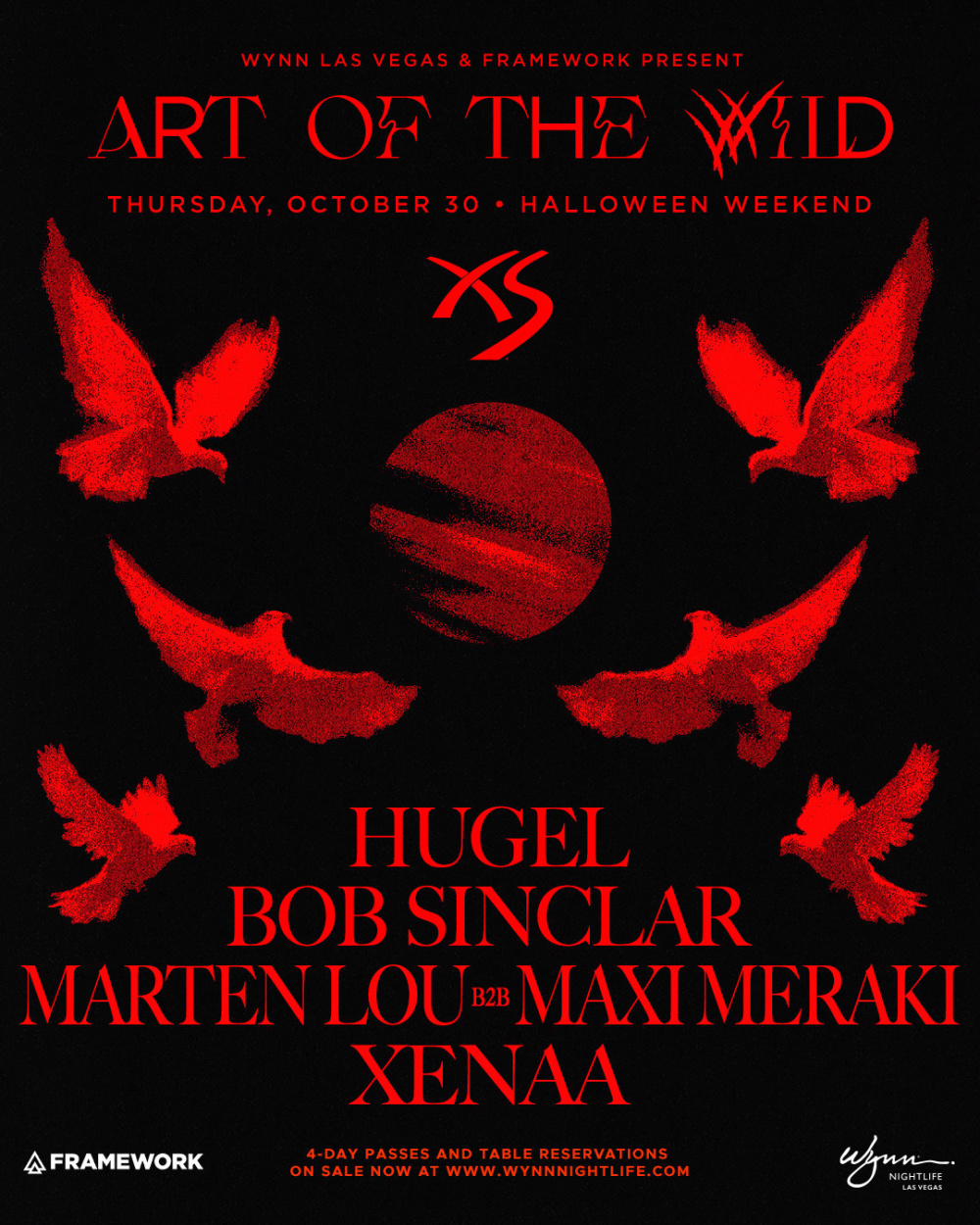 Art of The Wild transforms XS Nightclub into an immersive electronic music paradise, celebrating the underground house and techno scene in Las Vegas. Set against the backdrop of XS's stunning design inspired by the human form and surrounding the glittering Encore pool, this event brings together a carefully curated lineup of acclaimed international DJs and artists.