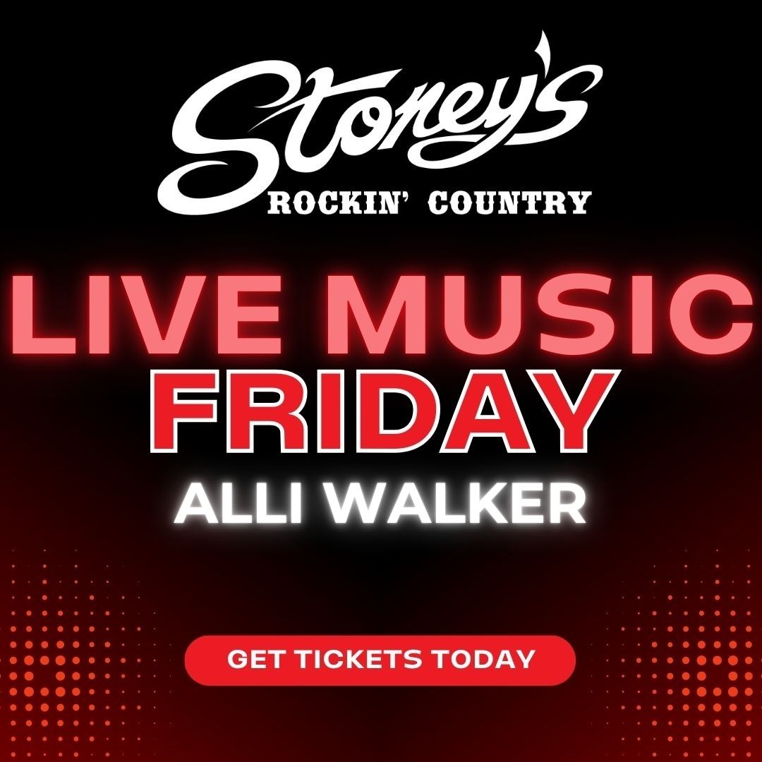 Alli Walker brings her vibrant country music to Stoney's Rockin' Country, promising an energetic night of toe-tapping tunes and heartfelt lyrics. Known for her blend of contemporary country with a touch of rock influence, Walker's performances are a testament to the evolving sound of modern country music. Her powerful vocals and engaging stage presence have been captivating audiences across the country.