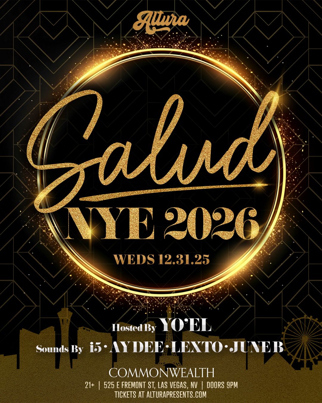 Altura's SALUD party takes over Commonwealth's double-decker space for New Year's Eve, bringing its signature Latin-inspired celebration to the heart of Downtown Las Vegas. The event transforms the venue's 6,000 square feet across two floors, where crystal chandeliers hang above the dance floor and the rooftop offers views of the city as midnight approaches.
