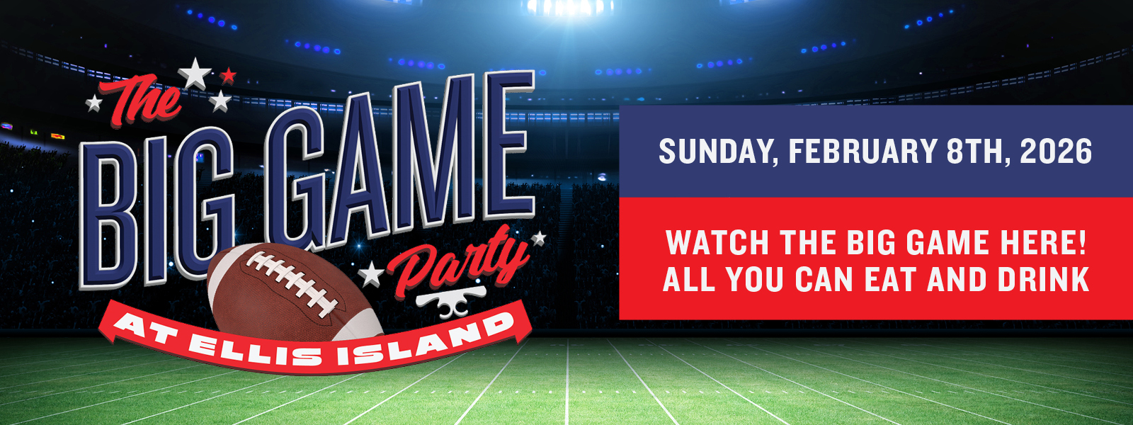 The Front Yard Beer Garden at Ellis Island transforms into the ultimate Big Game viewing destination, with nine TVs spread throughout the courtyard centered around an impressive 18-foot screen. Six additional TVs at the bar ensure there's not a bad seat in the house, whether you're facing the massive display or catching the action from the buddy bar. The setup creates that perfect balance between outdoor beer garden vibes and serious game-watching real estate.