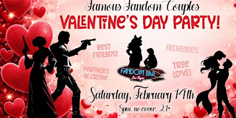 Millennium Fandom Bar in the Arts District transforms into a celebration of pop culture's most iconic pairs for this Valentine's Day themed party. Whether you're channeling the romance of your favorite on-screen couple, the loyalty of best friend duos, or the chaotic energy of rivals and partners in crime, the night welcomes all interpretations of fandom relationships. Costumes are encouraged, so expect to see everything from classic superhero sidekicks to anime pairs to beloved TV show besties walking through the door.