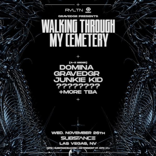 RVLTN and INSOMNIAC join forces to bring a bone-rattling night of hard-hitting electronic music to Substance nightclub. Headlining the evening is GRAVEDGR, known for his sinister bass productions and menacing masked persona that creates an atmosphere of dark, high-energy techno. The ominous beats and thundering drops characteristic of GRAVEDGR's sound will transform Substance into an otherworldly playground of heavy bass and pulsating rhythms.